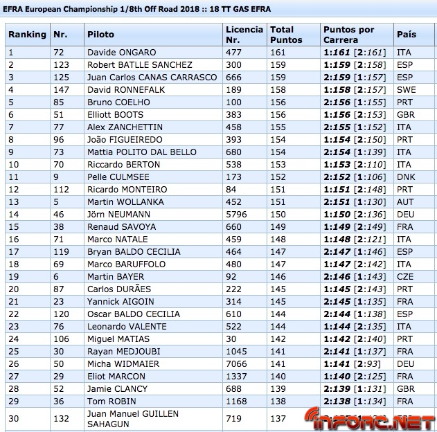 Gran trabajo del equipo español colocando dos pilotos en el top 3 y 5 en el top 30, liderados por Bryan Baldo en la posición 17, seguido de su hermano en el 22 y Juanma Guillen en el 30. Esperamos que el resto del compañeros sigan subiendo y mejorando tiempos para poder verlos lo más arriba posible en las cualis de hoy ¡No os las perdáis!