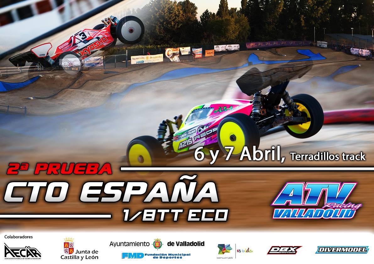 El Club ATV en colaboración con el Ayuntamiento de Valladolid, Divermodel, Junta de Castilla y Leon, DBX y Aecar, tienen el gusto de invitaros a la 2ª prueba del Campeonato de España de 1/8 TT.E 2019, los días 6 y 7 de Abril.